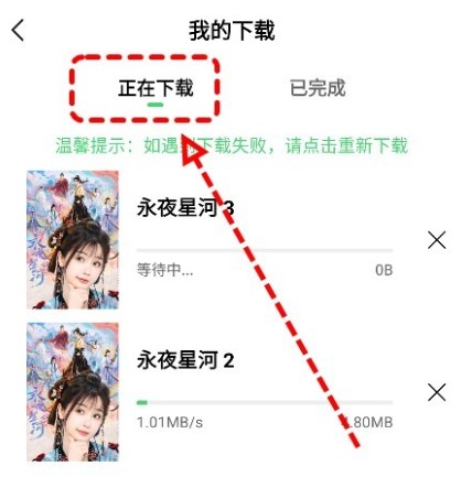 4、选择完成之后就可以查看下载的内容以及下载的情况