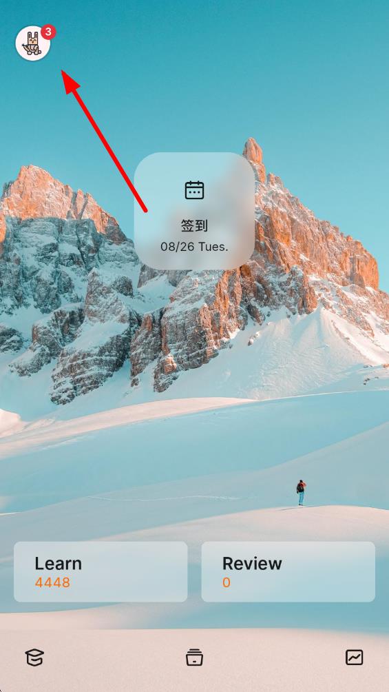 1、打开不背单词app,首页点击左上角的头像图标,进入个人页面。