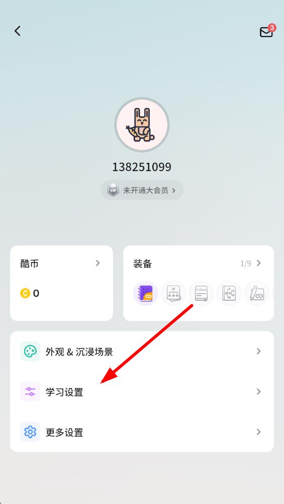 2、在个人页面中,找到并点击学习设置选项,进入学习设置界面。