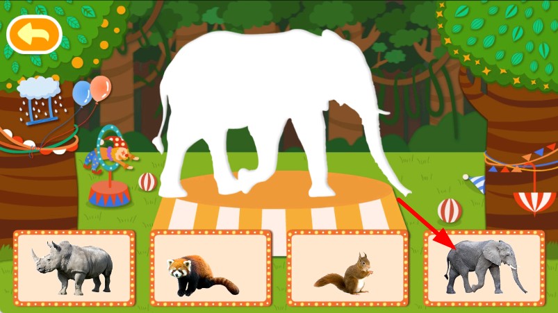 2、观察上方动物剪影,从下方选对应的动物。
