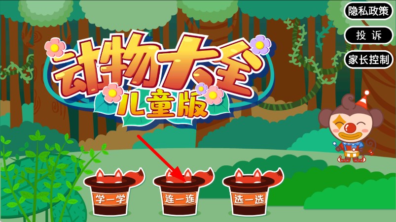 1、打开动物大全,点击连一连,进入游戏界面。