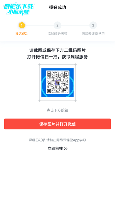 3、最后保存图片并打开微信添加辅导老师,现课程已迁移,麻烦小伙伴们前往网易云课程app学习。