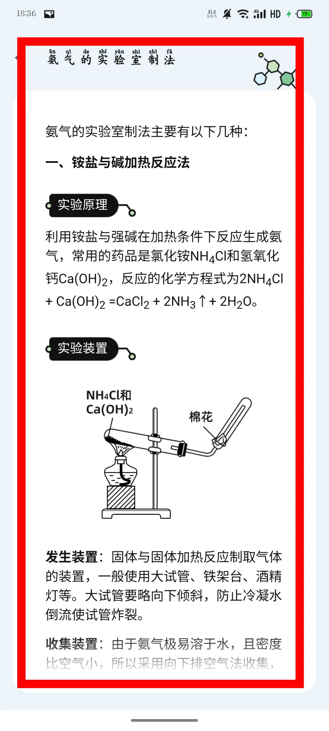 3、进入详情页,即可查看氨气实验室制法的内容。