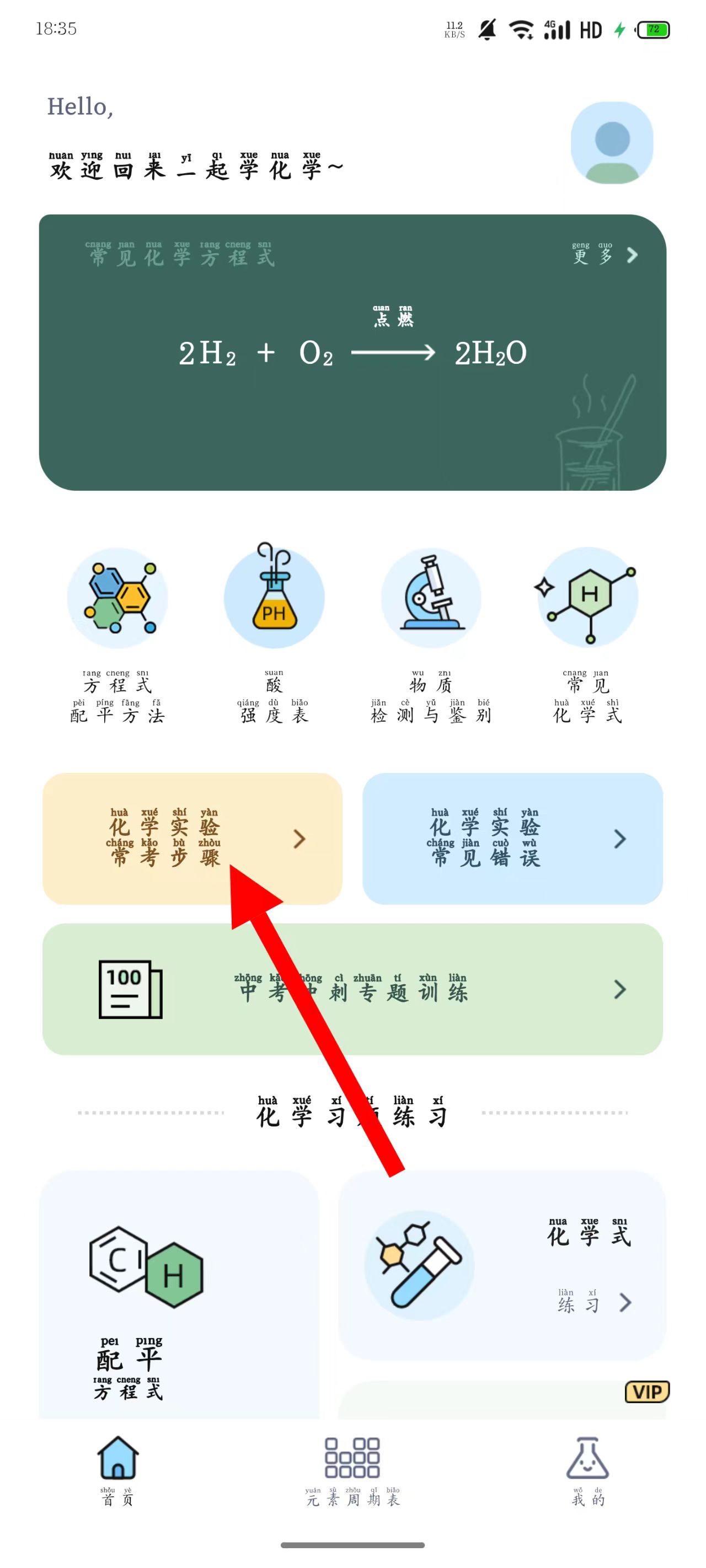 1、打开化学学习,点击化学实验常考步骤板块。