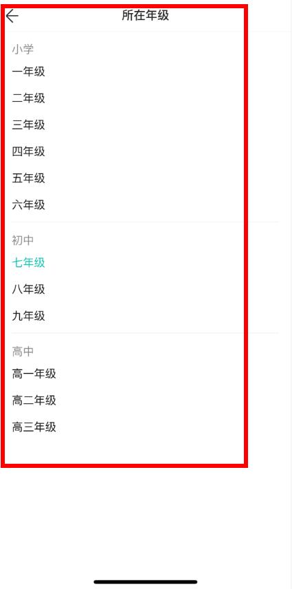 3、在弹出的年级列表中,选择对应的年级即可。