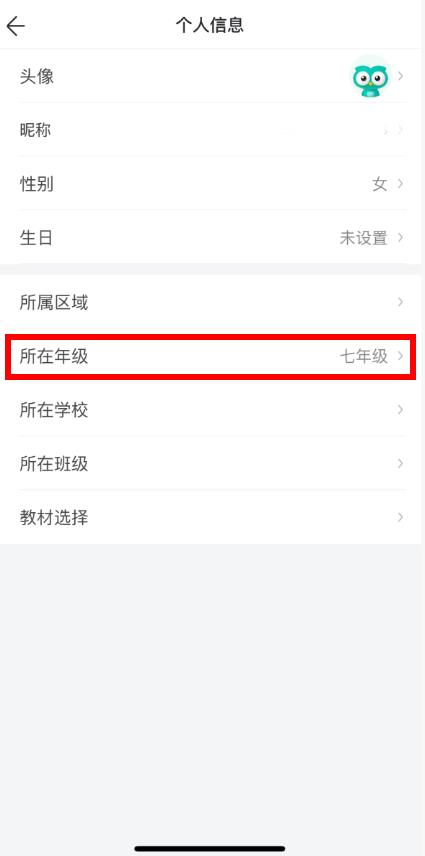 2、在个人信息页面中,点击所在年级选项。