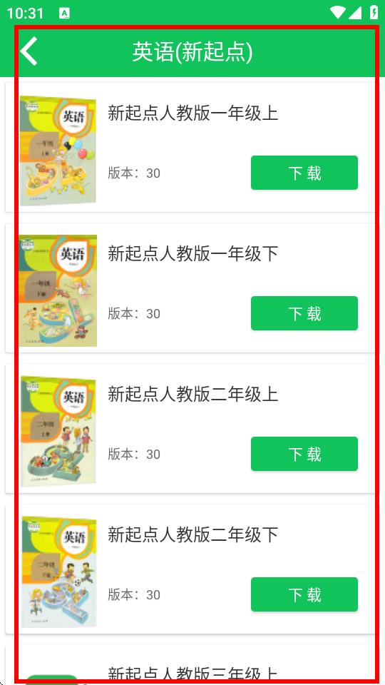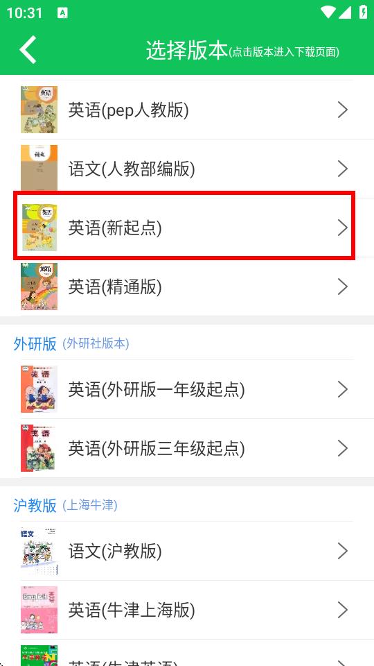 3、进入选择版本界面后,找到并点击要下载的英语版本,如英语新起点。