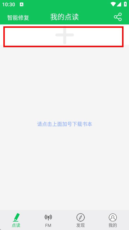 1、打开朗朗点读App,在我的点读界面中,点击中间的+号。