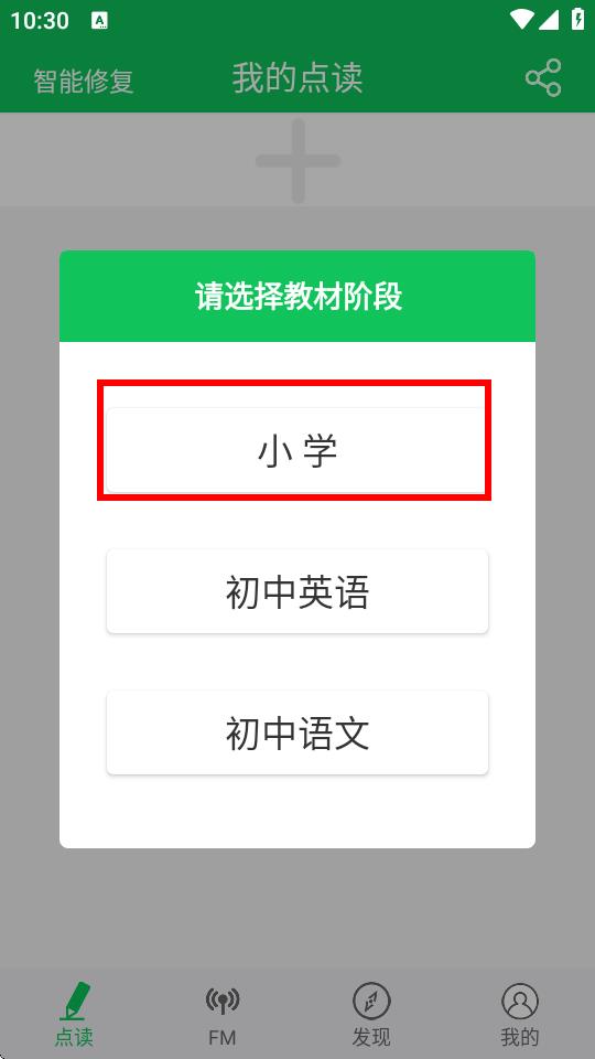 2、在弹出的请选择教材阶段界面,点击小学选项。