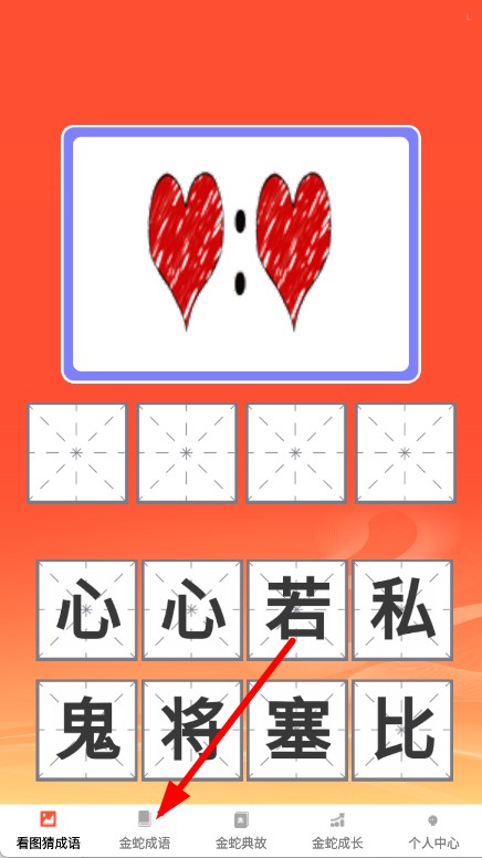 1、打开APP,点击底部导航栏的金蛇成语,进入金蛇成语列表页面。