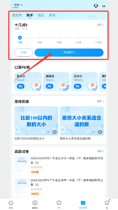3、进行专项训练时,先选定科目与题目数量,确认后即可启动习题模式。