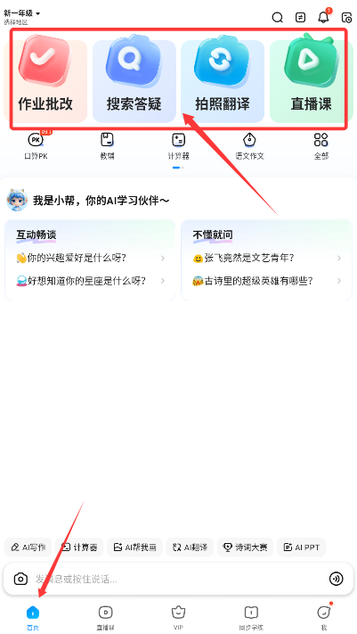 作业帮扫一扫找答案是高效便捷的学习辅助工具,拥有海量题库资源,覆盖中小学各学科知识点,遇到疑难问题时,只需拍照上传,即可获取详细的解题思路与步骤解析,帮助学生快速攻克学习难点,除拍照搜题外,还提供作文素材库、英语单词查询、教材练习及科学计算器等实用功能,满足日常学习需求。
