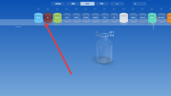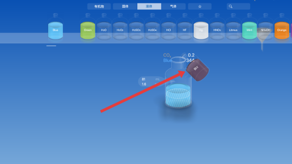 2、在实验材料中,可以点击需要的液体进行实验操作。