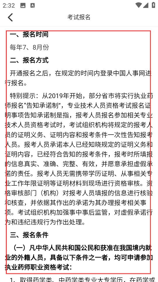 3、在考试报名页面,查看报名时间,方式条件等信息。