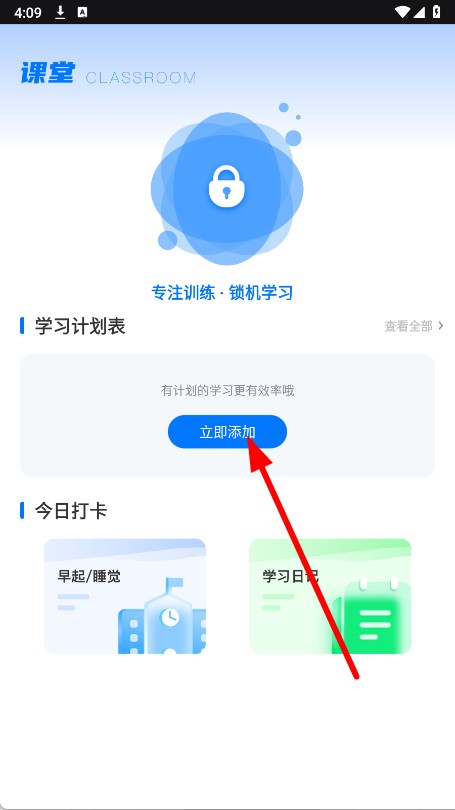 2、在课堂页面的学习计划表区域,点击立即添加按钮。