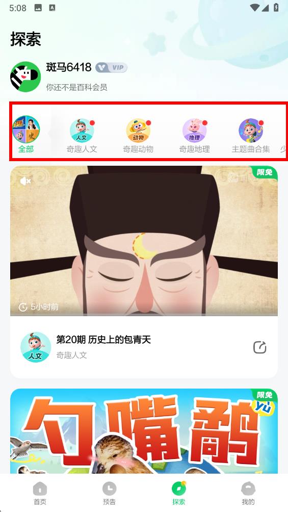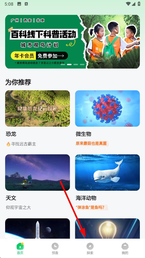 2、在探索界面中能看到不同分类,点击相应分类即可浏览该分类下的科普内容。