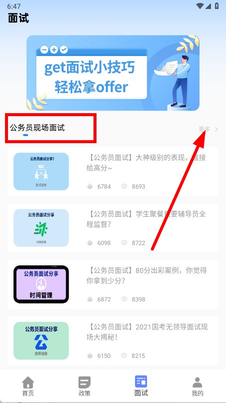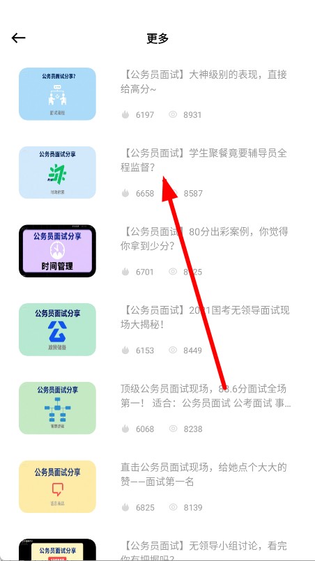 3、进入更多页面后,选择想要查看的公务员面试内容。