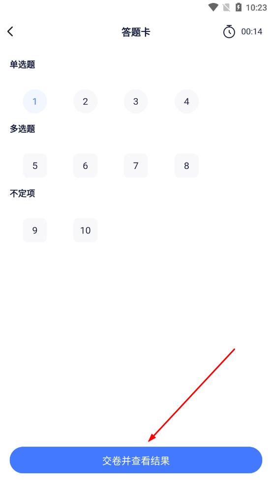 3、在答题卡界面,点击交卷并查看结果按钮。
