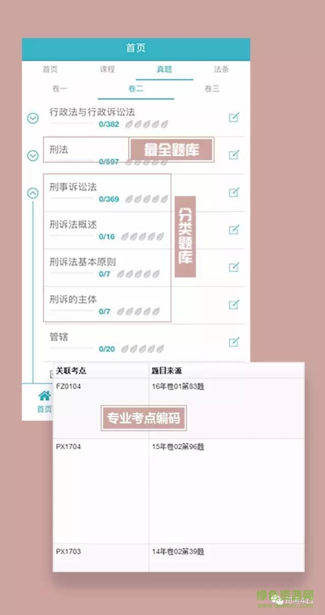 收录近十年的法考、司考考试真题以及各种模拟题,让你能够更加准确地通过刷题掌握知识点,提高学习效率。
