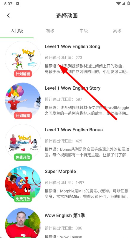 1、低龄孩子口语入门启蒙:针对3-6岁低龄孩子,家长协助完成AI兴趣匹配,让孩子观看以该动画形象为主角的基础口语视频,通过趣味画面吸引孩子注意力,建立口语认知。