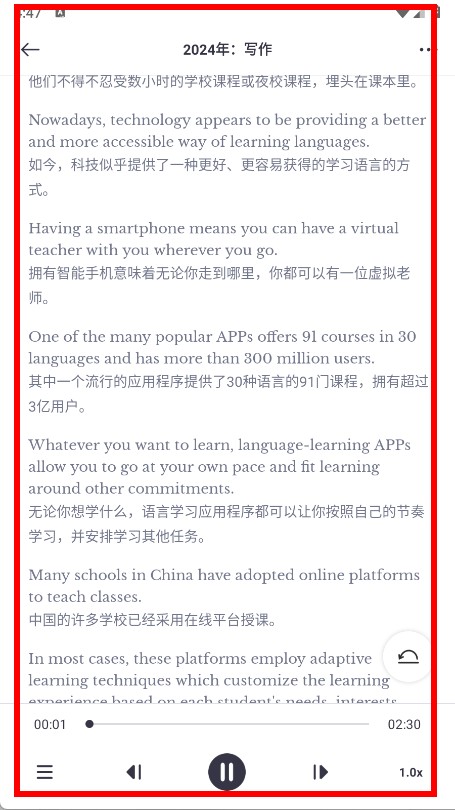 4、点击后即可进入该真题的查看页面,查看真题内容并可播放配套音频。