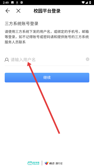 4、在跳转到校园平台登录页面后,点击输入框填写用户名后完成登录操作。