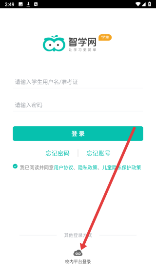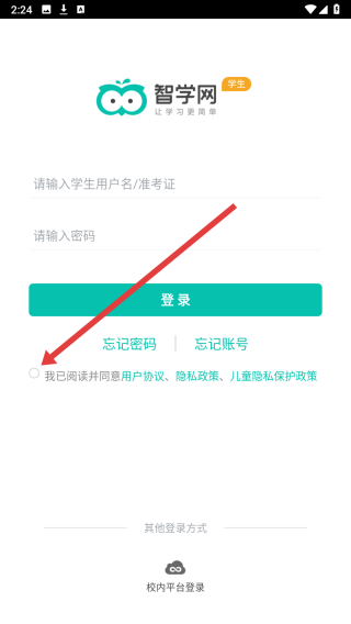 2、在进入到登录页中,需先点击按钮勾选同意协议和政策条款。