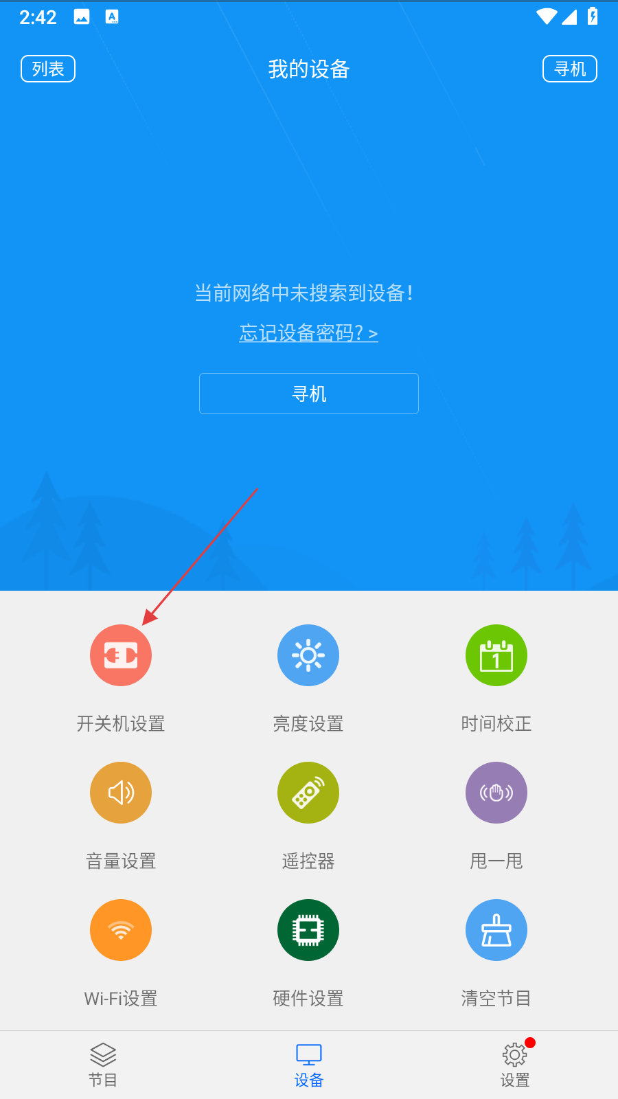 4、即可选择设备,若当前网络未搜索到设备,可尝试寻机功能或切换网络连接。