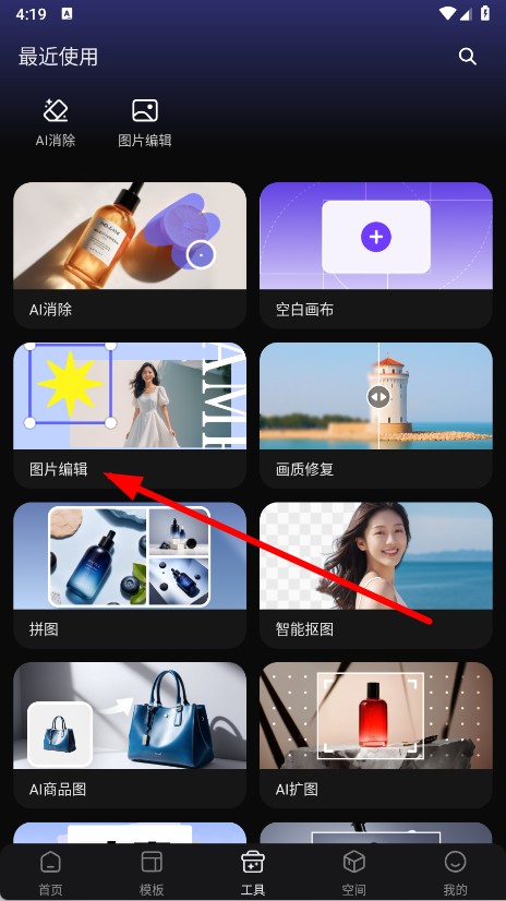 2、在工具页面,找到并点击图片编辑功能模块。
