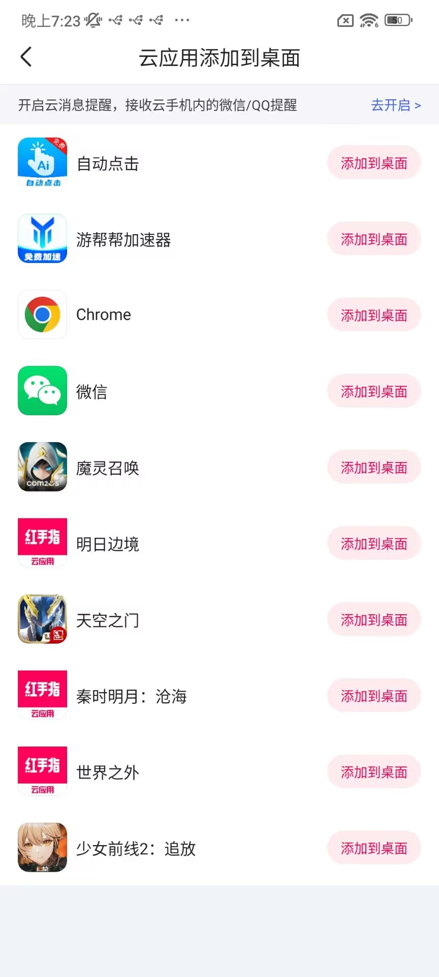2.在展示的应用列表,看到需要的任何云应用,点击【添加到桌面】,就能成功创建云应用快捷方式啦!