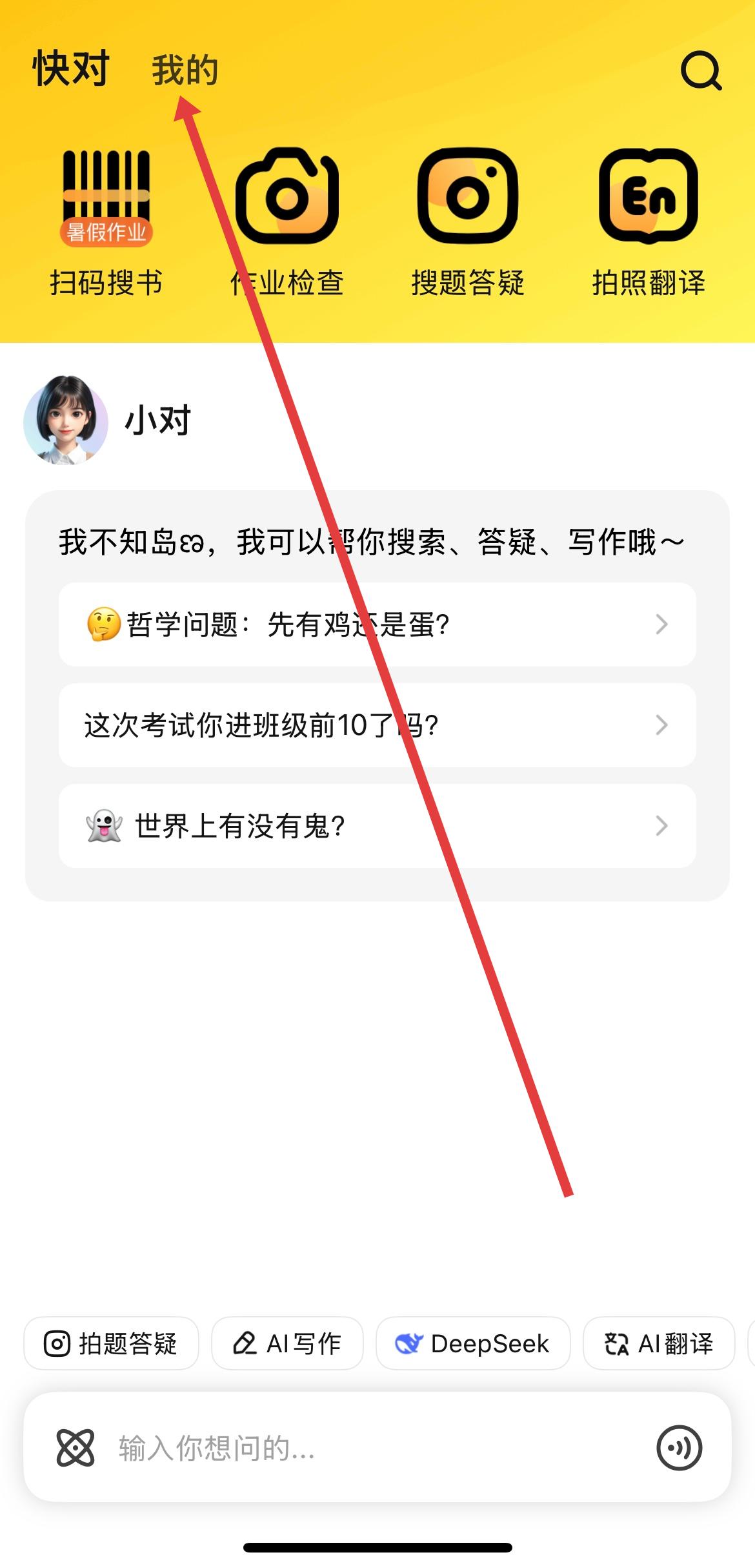 1、打开快对APP,点击顶部导航栏快对右边的我的按键,进入个人页面。
