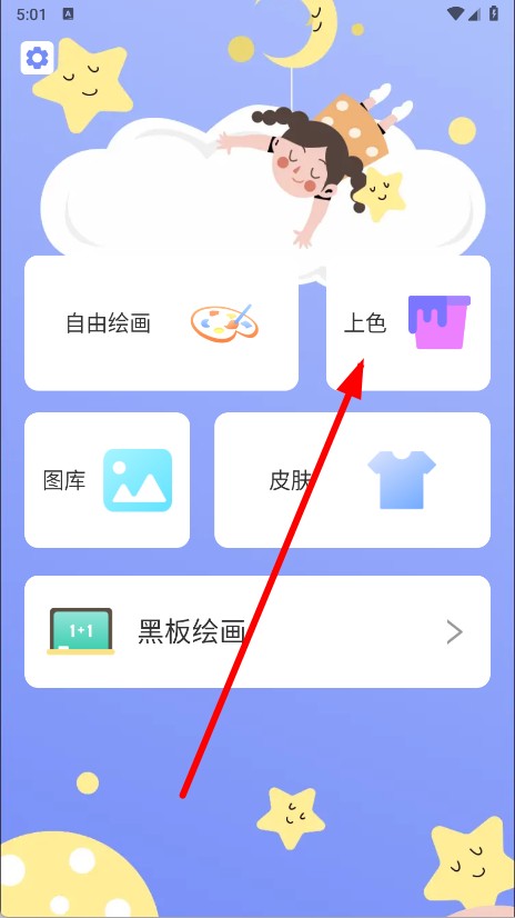 1、打开手机绘画绘图,在主界面点击上色选项。