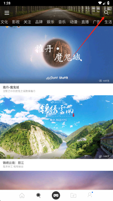 1、来到搜索页,点击右上角的搜索