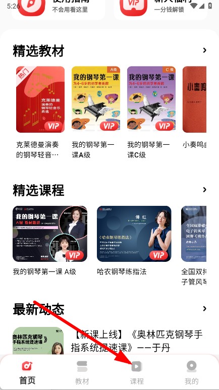 1、打开人音学琴,点击底部导航栏的教材选项。