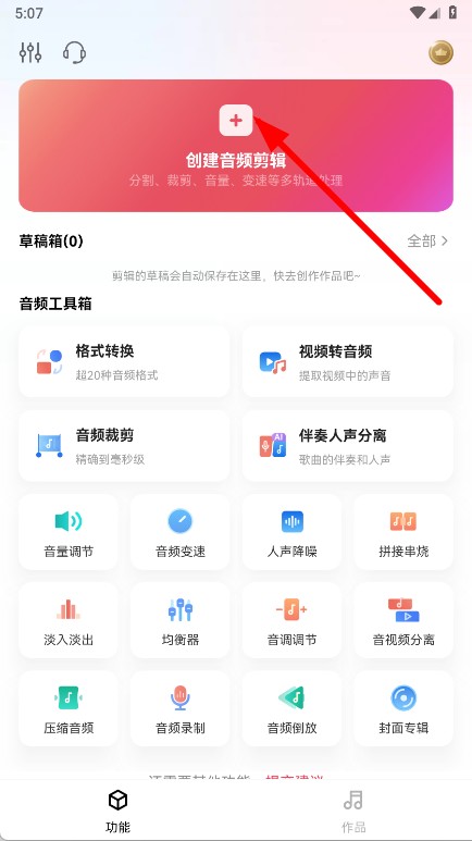1、打开音频快剪,点击首页创建音频剪辑按钮。