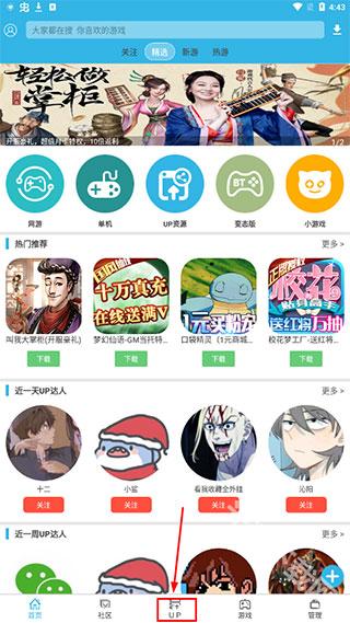 4、如果是想要找到自己想要开挂游戏的应用的话,那必须也是点击“UP”功能按钮;
