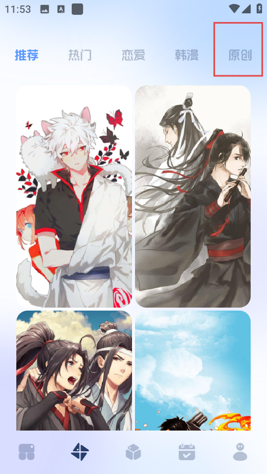 2、在壁纸分类页面,点击原创,进入原创壁纸列表页面。
