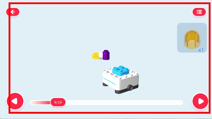 4、查看机器人的搭建步骤动画,跟随动画学习机器人的搭建过程。