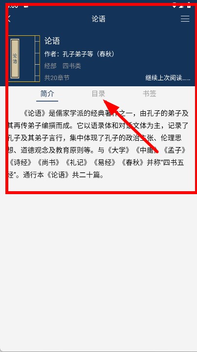2、进入页面后,可查看其简介等内容,点击目录选项。
