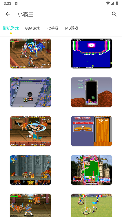 2、进来之后您就可以看到街机游戏,GBA游戏,FC手游,MD游戏了