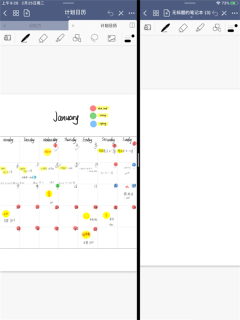 4.点击新建或者打开另外的笔记本,两个笔记左右同时出现在同一个屏幕,这样就可以对goodnotes实现左右同时分屏了