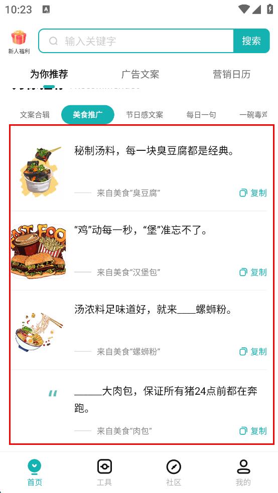 1、这里提供的文案类型丰富多样,各种文案都可以轻松的找到。
