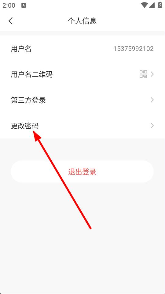 3、在个人信息页面里,点击更改密码选项,进入修改登录密码页面。