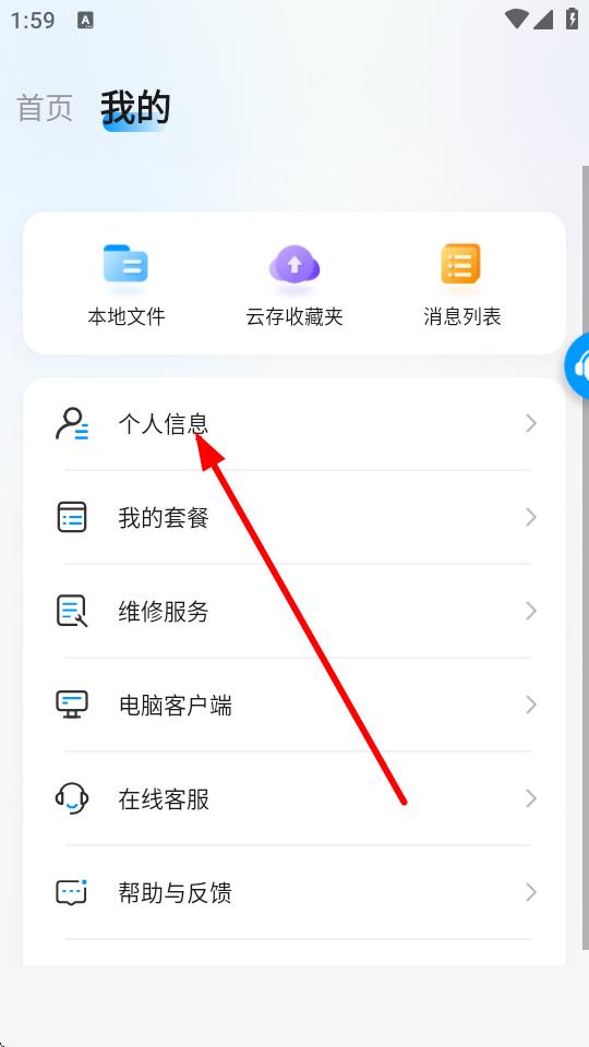 2、在我的页面中,找到并点击个人信息选项,进入个人信息页面。