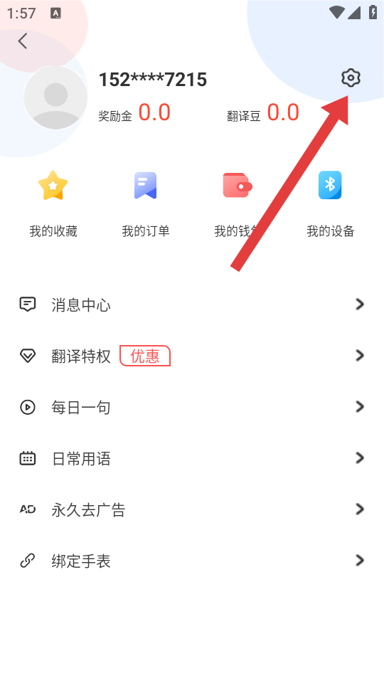 1、在出国翻译官主界面,点击右上角的个人中心图标,进入个人中心页面。