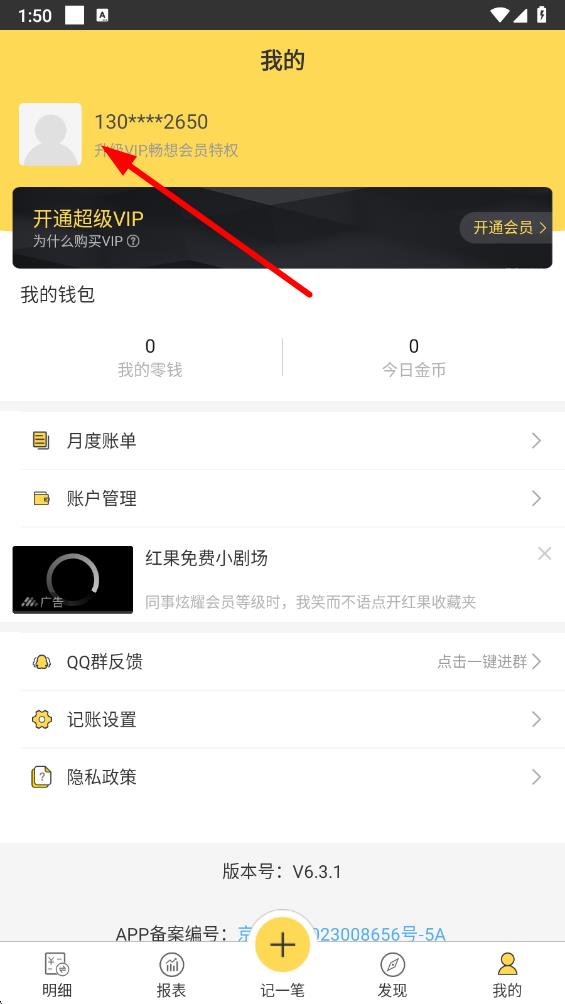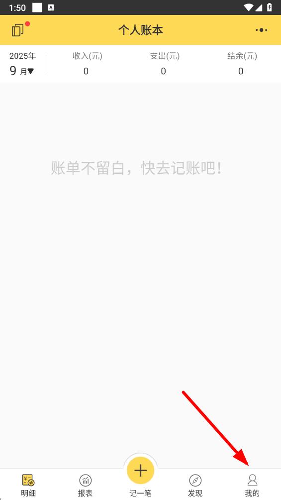 1、打开预记智能账本应用,点击底部导航栏最右侧我的选项,进入个人相关界面。