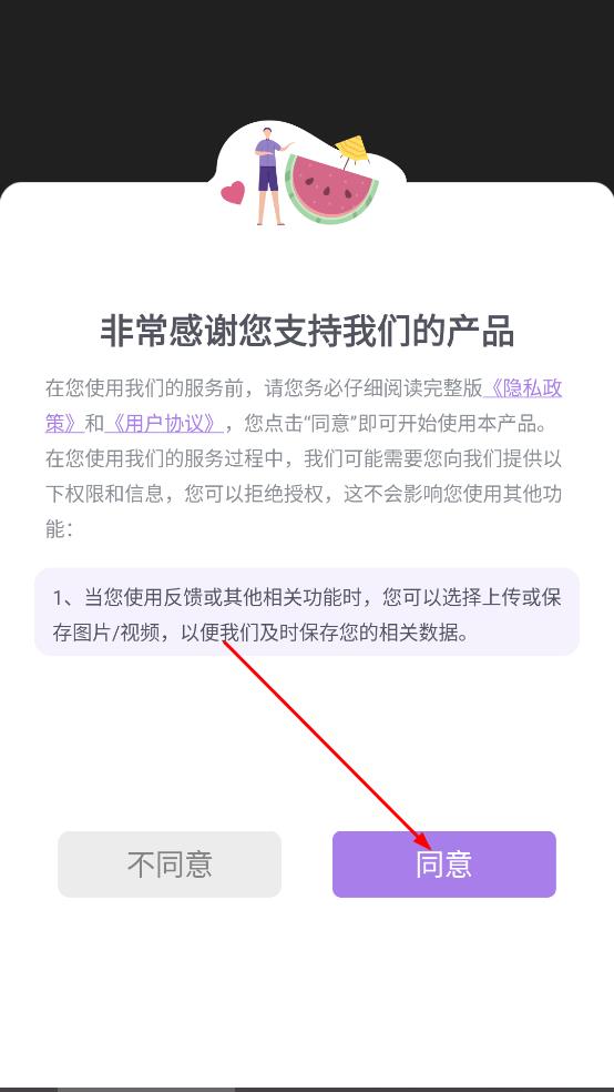 1、在产品使用前的提示页面,点击同意,进入软件主界面。