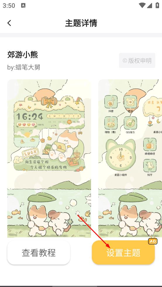4、在主题详情页,点击设置主题,可将该主题设置为软件主题。