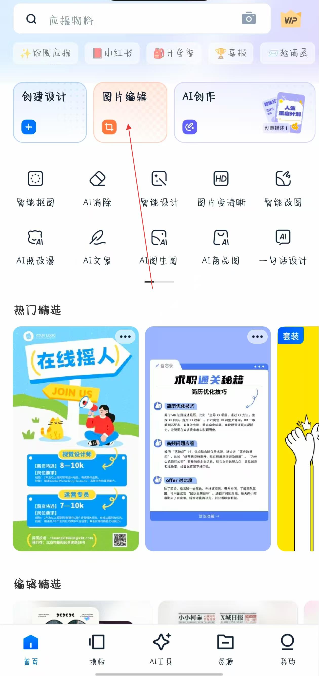 AI智能设计新时代,多种AI图片编辑工具,助力内容生产效率提升!还有50万+原创设计模板,涵盖海报/公众号配图/logo/PPT/电商主图/热点节日/每日一签等众多场景,满足您的不同设计需求;