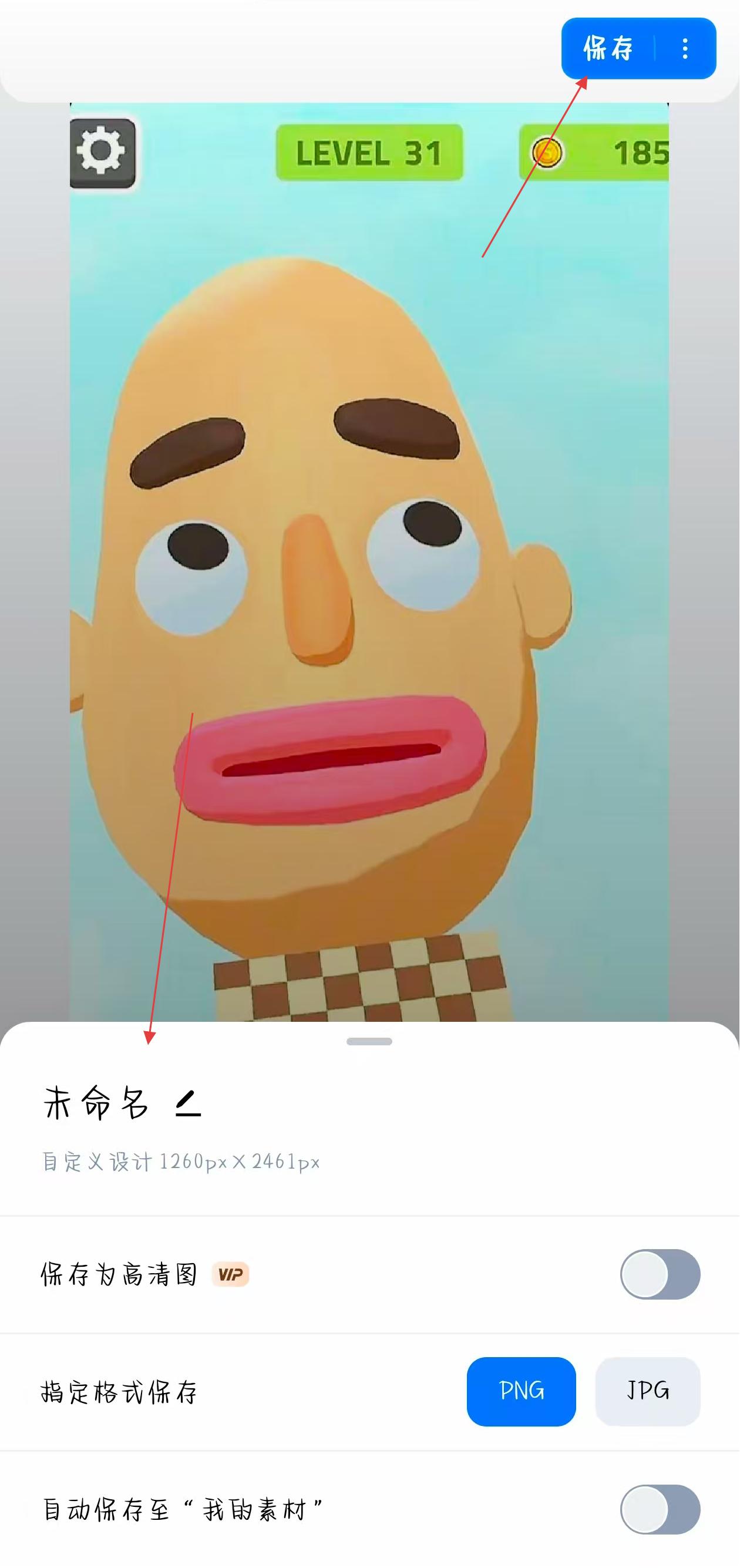 4、编辑完成后,点击右上角保存按钮,在弹出的选项中设置文件名、保存格式等,完成图片编辑后的保存。
